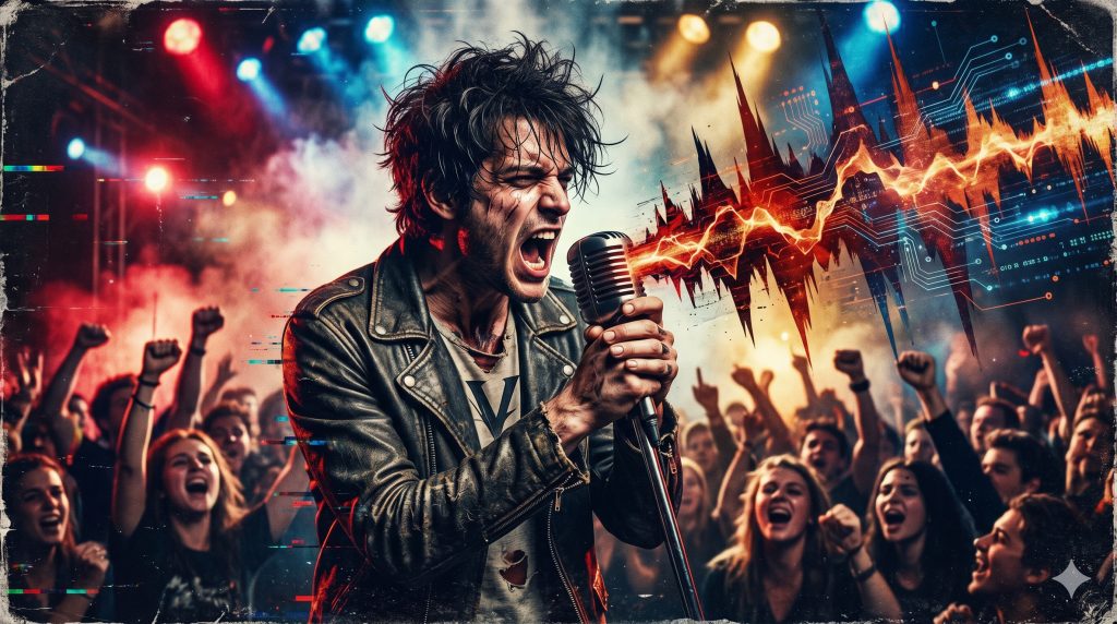 È una schizofrenia vocale in cui il silicio fruga a tentoni nell’archivio del nostro rock. E va benissimo così. In questa indagine noi non cercavamo il sosia da pianobar, la copia sterile che scimmiotta l’originale. Cercavamo l’atmosfera. L’impatto. La prova definitiva che l’algoritmo può fondere insieme le frequenze e l’energia di un’intera generazione, ma gli mancherà sempre l’unica cosa in grado di tenere in piedi un pezzo dall’inizio alla fine: l’identità.
